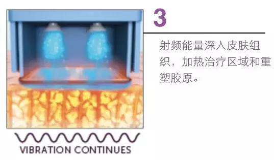 使用单极射频能量传递电流,通过皮肤和皮下组织的固有电阻产生热量。当温度到达65-70度时, 会让胶原蛋白变性, 收缩, 然后拉紧皮肤。